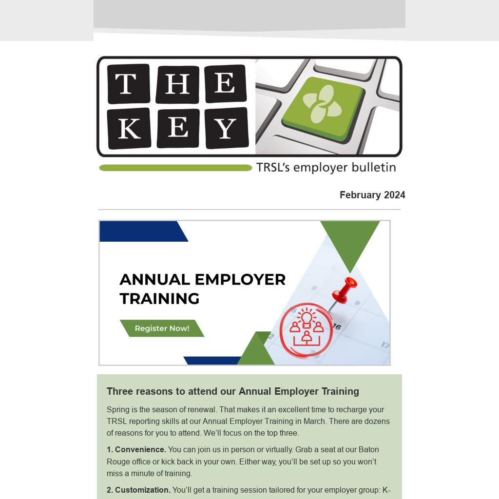 Spring is the season of renewal. That makes it an excellent time to recharge your TRSL reporting skills at our Annual Employer Training in March. There are dozens of reasons for you to attend. We’ll focus on the top three.