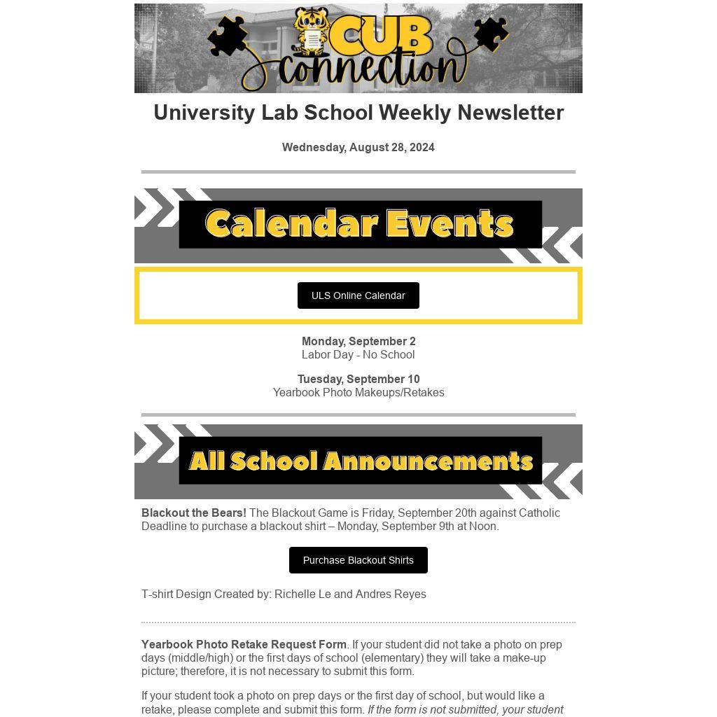 Have You Signed Up for Cub Club? The Cub Club is a volunteer group of parents whose mission is to connect and to involve parents, faculty and staff through the promotion of membership and volunteerism and to provide resources and services to enhance the University Laboratory School community.