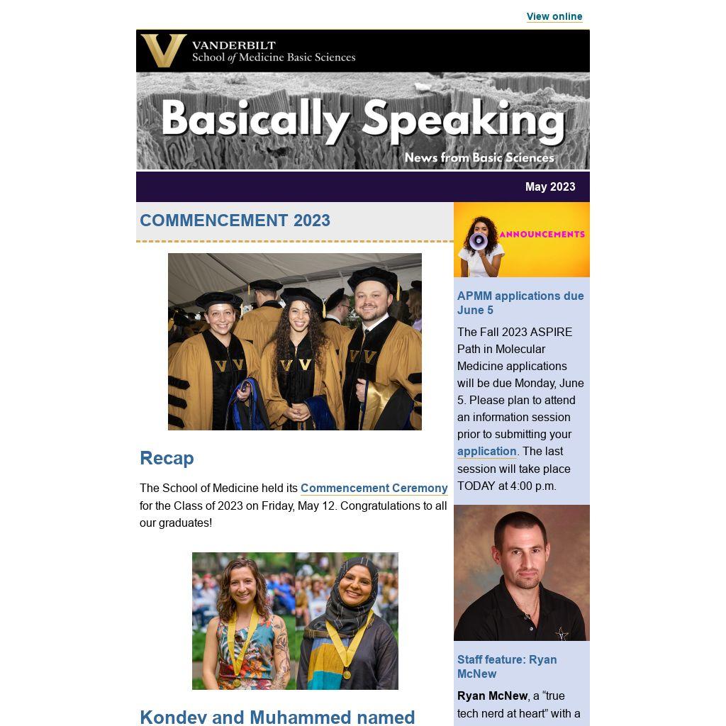 About the newsletterThis newsletter recognizes the achievements and latest discoveries of students, postdocs, faculty, and staff associated with Basic Sciences departments, centers, and cores or who carry out basic biomedical research at Vanderbilt.
