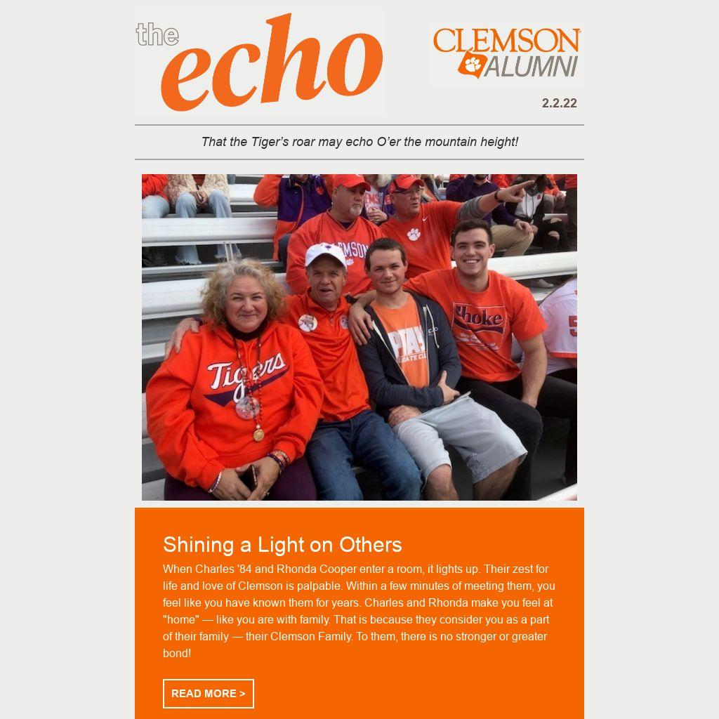 The Clemson Alumni Association will be sharing regular updates with the Clemson Family via email. Update your contact information to make sure you are receiving these updates.