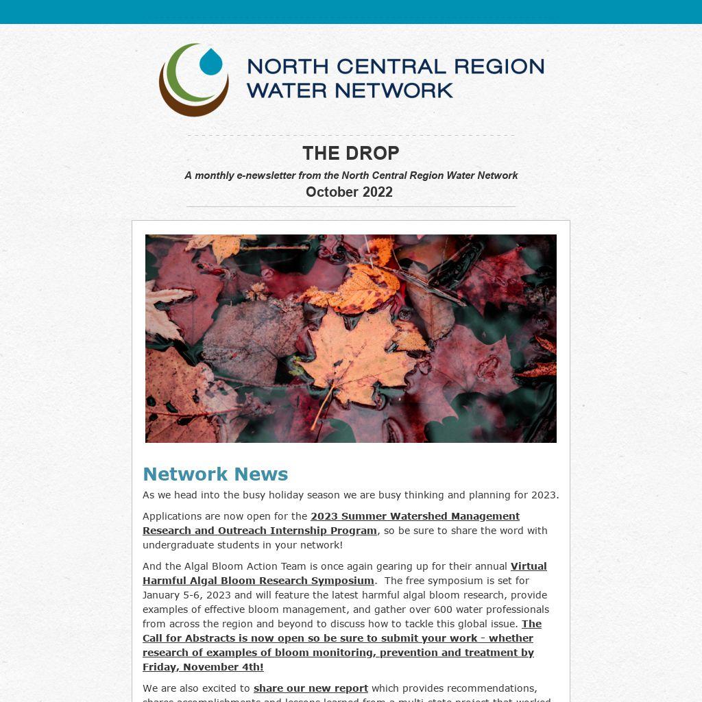A monthly e-newsletter from the North Central Region Water Network October 2022