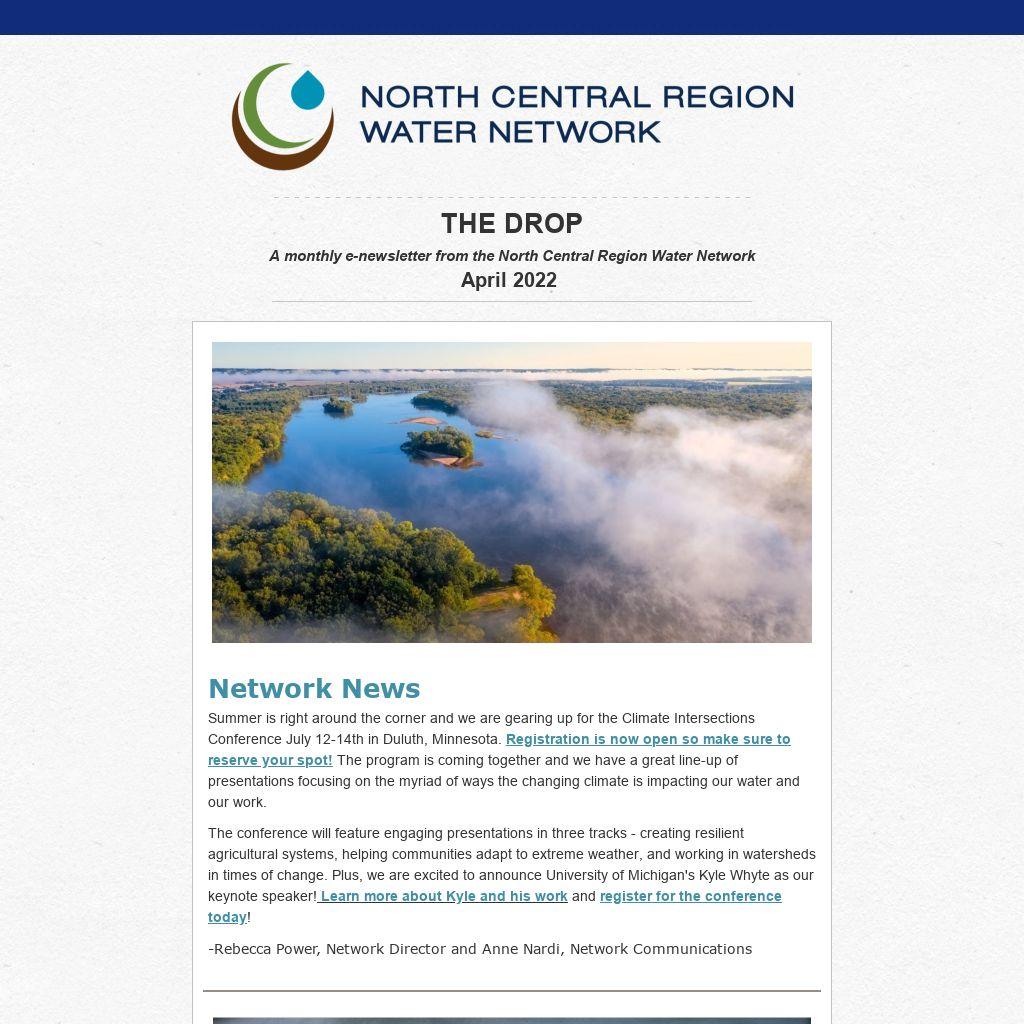 A monthly e-newsletter from the North Central Region Water Network April 2022