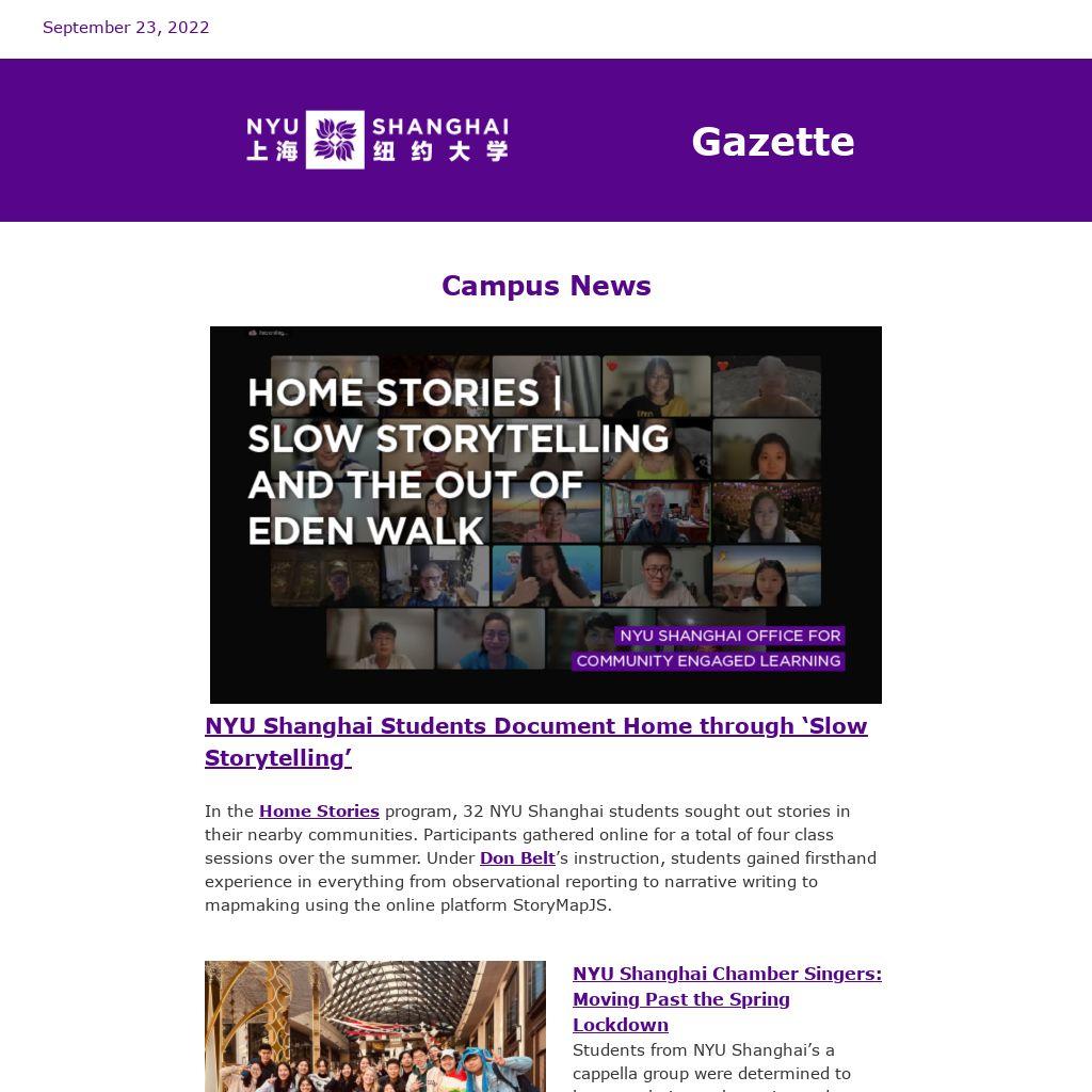 In the Home Stories program, 32 NYU Shanghai students sought out stories in their nearby communities. Participants gathered online for a total of four class sessions over the summer. Under Don Belt’s instruction, students gained firsthand experience in everything from observational reporting to narrative writing to mapmaking using the online platform StoryMapJS.