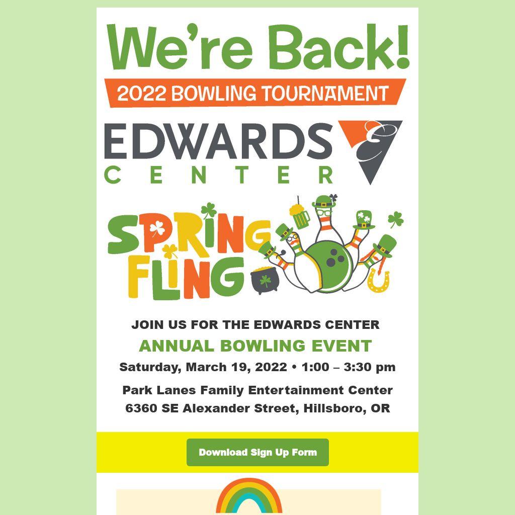 $275 Â Event Sponsor*Â *Includes 5 person team, bowling shoes, lunch and sponsor recognition verbally, displayed at the event and on social media. $100 is a tax deductible donation to help Edwards Center host this event and a tax donation receipt for this amount will be issued.