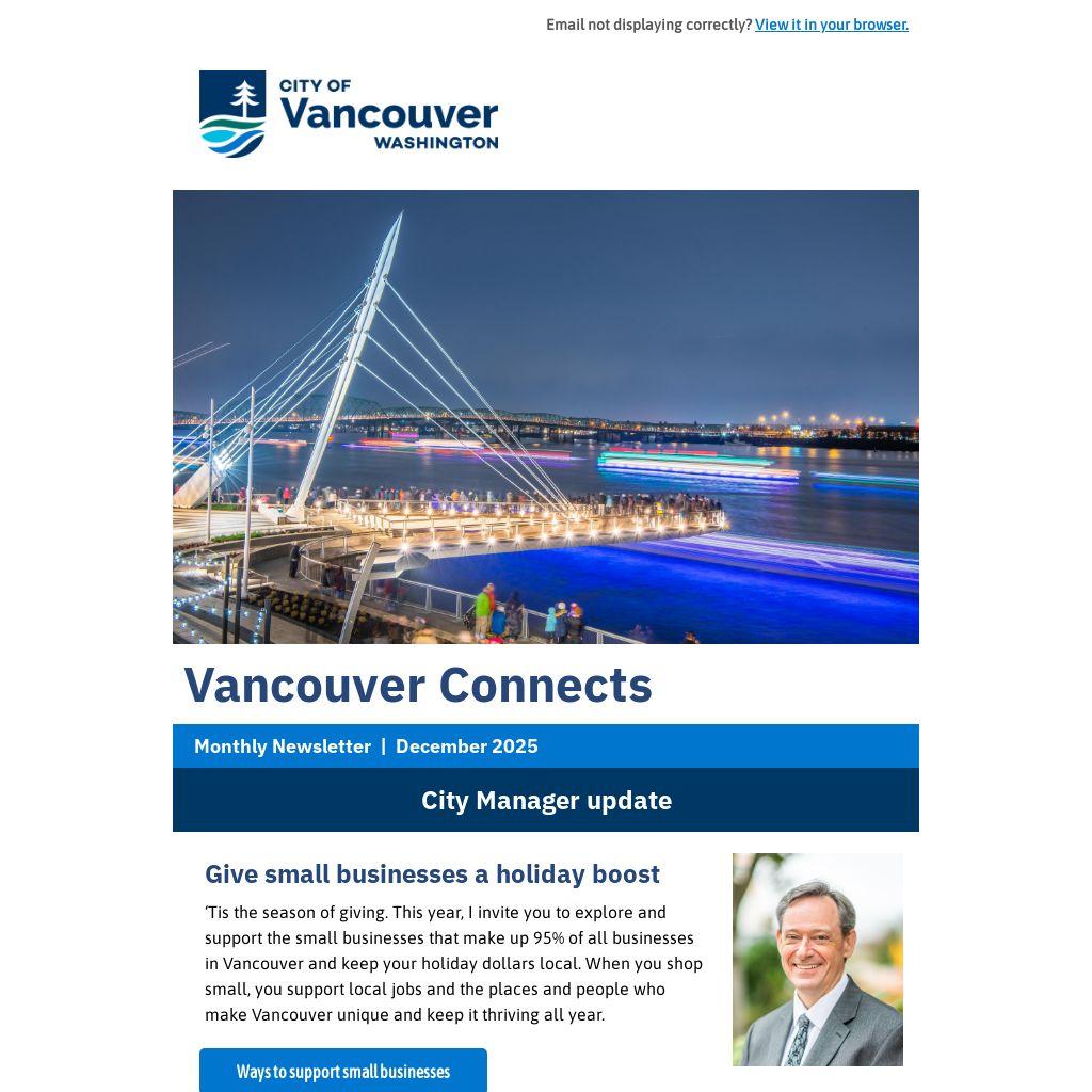 ‘Tis the season of giving. This year, I invite you to explore and support the small businesses that make up 95% of all businesses in Vancouver and keep your holiday dollars local. When you shop small, you support local jobs and the places and people who make Vancouver unique and keep it thriving all year.