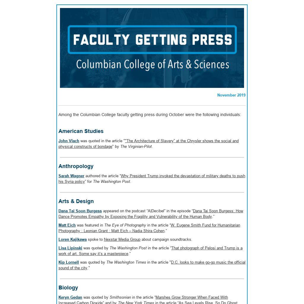 Columbian College of Arts and Sciences 801 22nd St. NW