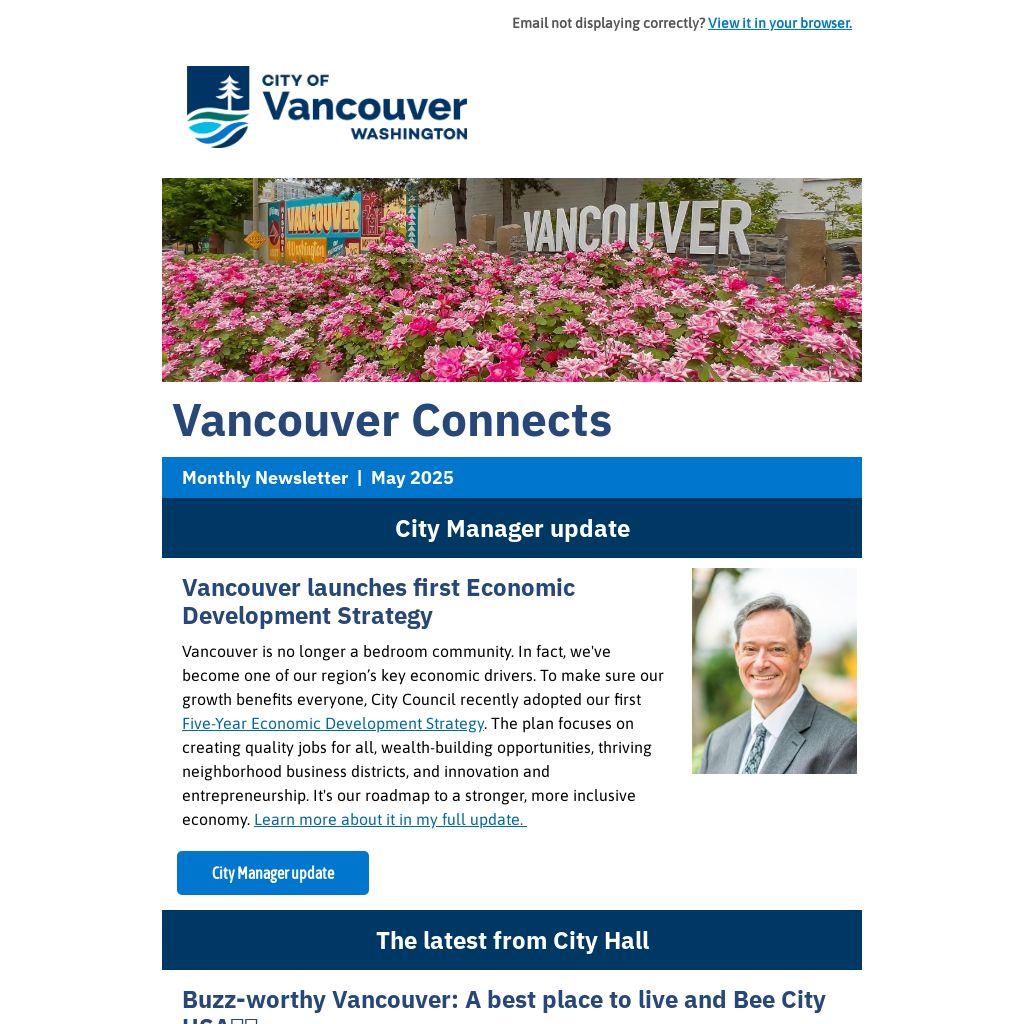 Vancouver is no longer a bedroom community. In fact, we've become one of our region’s key economic drivers. To make sure our growth benefits everyone, City Council recently adopted our first Five-Year Economic Development Strategy. The plan focuses on creating quality jobs for all, wealth-building opportunities, thriving neighborhood business districts, and innovation and entrepreneurship. It's our roadmap to a stronger, more inclusive economy. Learn more about it in my full update.