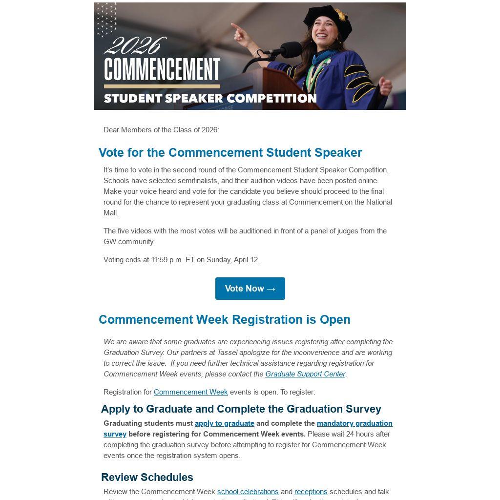 Vote for the Commencement Student Speaker |