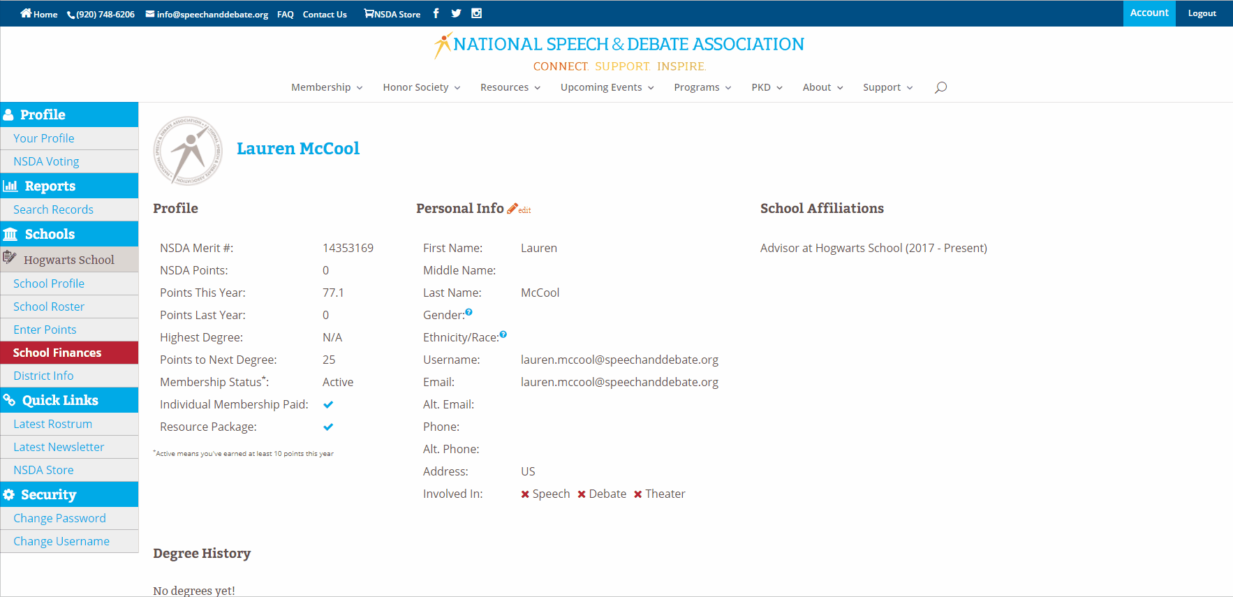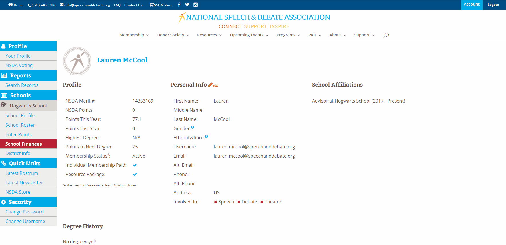 Congratulations to our six finalists for the 2019 Exemplary Student Service Award! The winner will be selected by a panel of past National Student of the Year Award recipients and announced in March. These students were selected for going above and beyond in using their speech and debate skills in service to their school or community. Madeline Gochee – Lincoln High School, Oregon