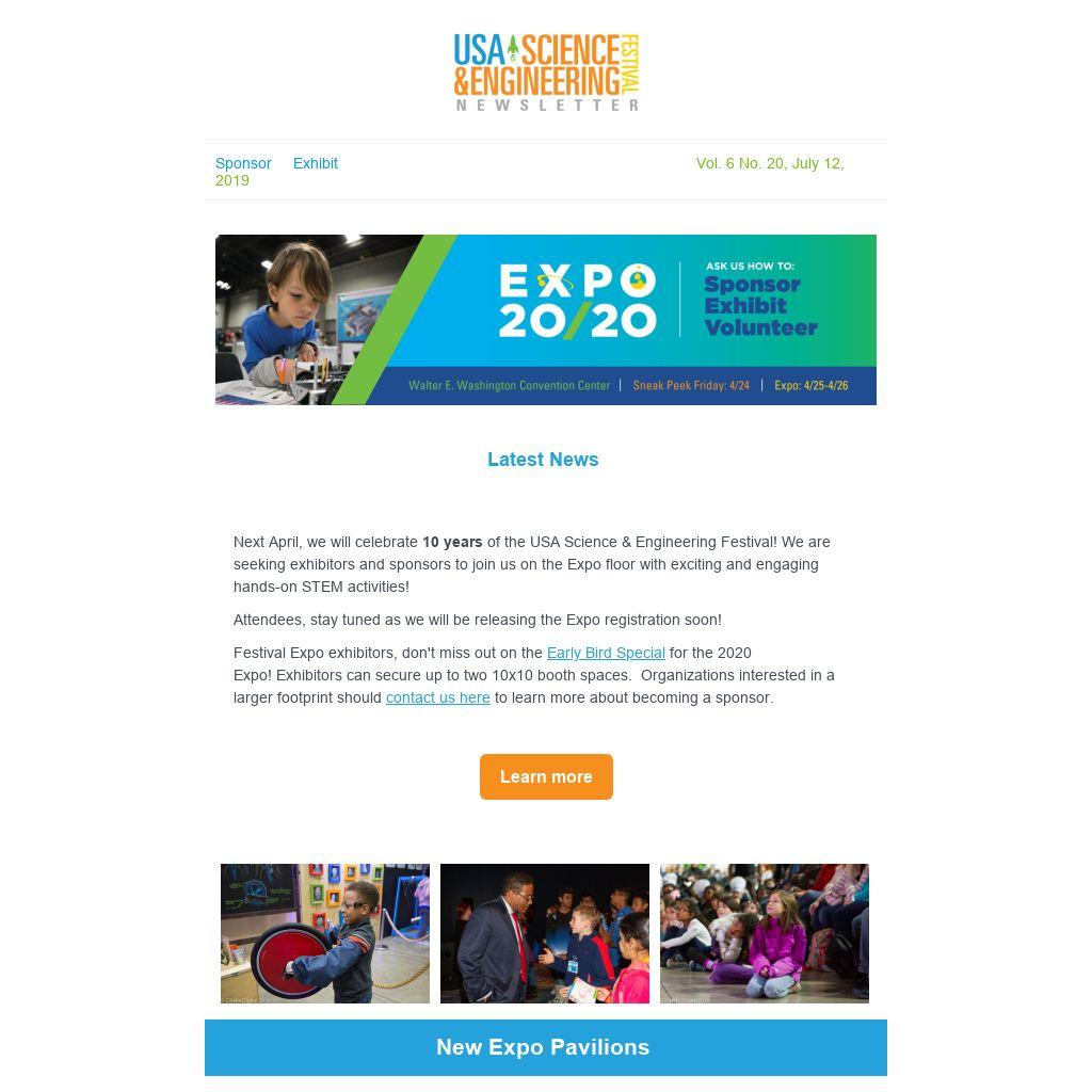 Next April, we will celebrate 10 years of the USA Science & Engineering Festival! We are seeking exhibitors and sponsors to join us on the Expo floor with exciting and engaging hands-on STEM activities!