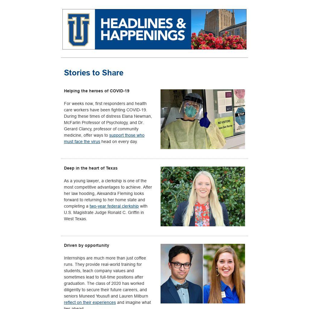 For weeks now, first responders and health care workers have been fighting COVID-19. During these times of distress Elana Newman, McFarlin Professor of Psychology, and Dr. Gerard Clancy, professor of community medicine, offer ways to support those who must face the virus head on every day.