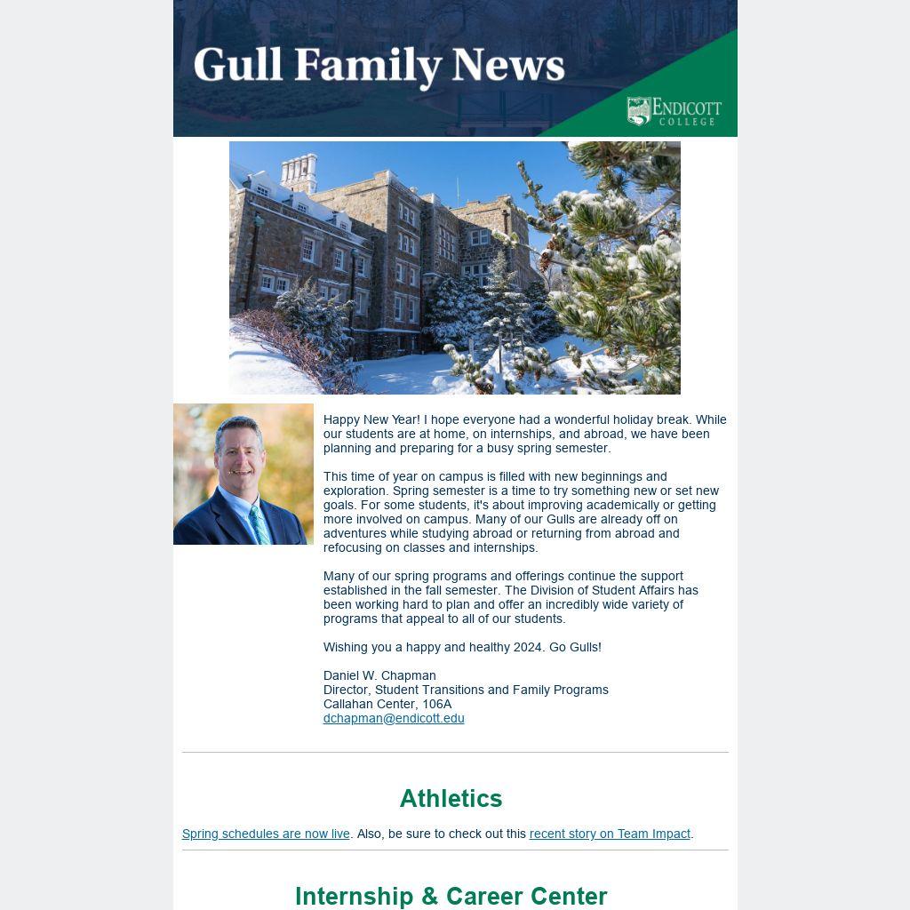 | Happy New Year! I hope everyone had a wonderful holiday break. While our students are at home, on internships, and abroad, we have been planning and preparing for a busy spring semester.