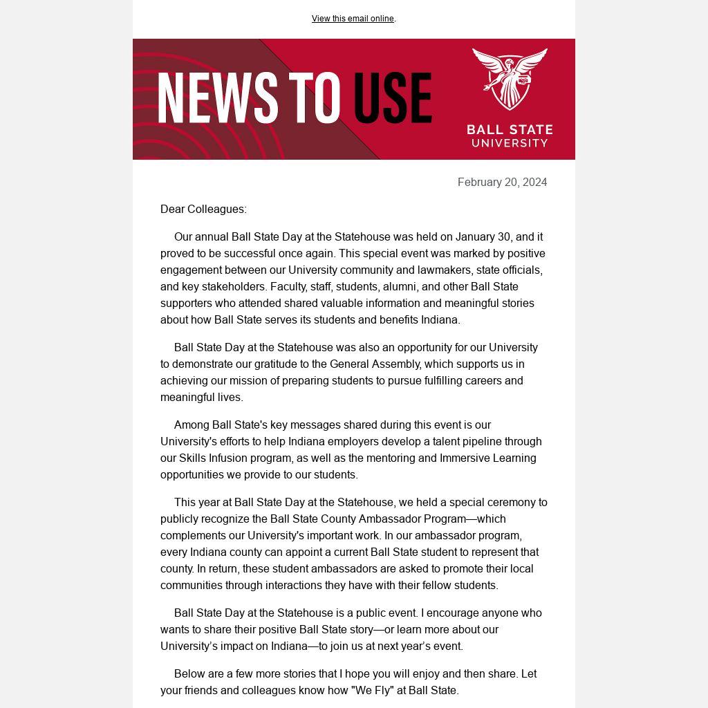 Copyright © 2024 Ball State University, All rights reserved. News and updates from Ball State's president.