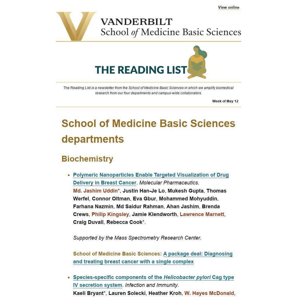 The Reading List is a newsletter from the School of Medicine Basic Sciences in which we amplify biomedical research from our four departments and campus-wide collaborators.