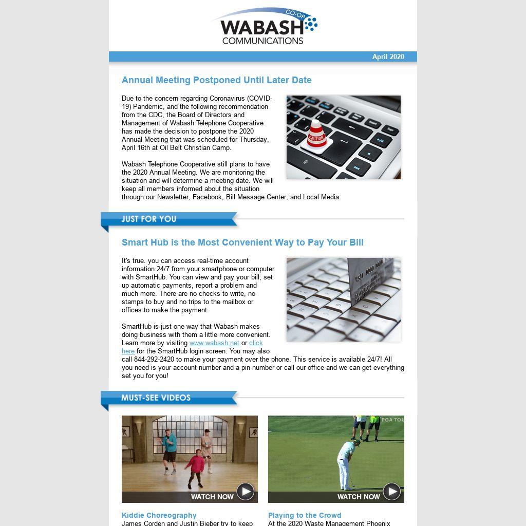 SmartHub is just one way that Wabash makes doing business with them a little more convenient. Learn more by visiting www.wabash.net or click here for the SmartHub login screen. You may also call 844-292-2420 to make your payment over the phone. This service is available 24/7! All you need is your account number and a pin number or call our office and we can get everything set you for you! |