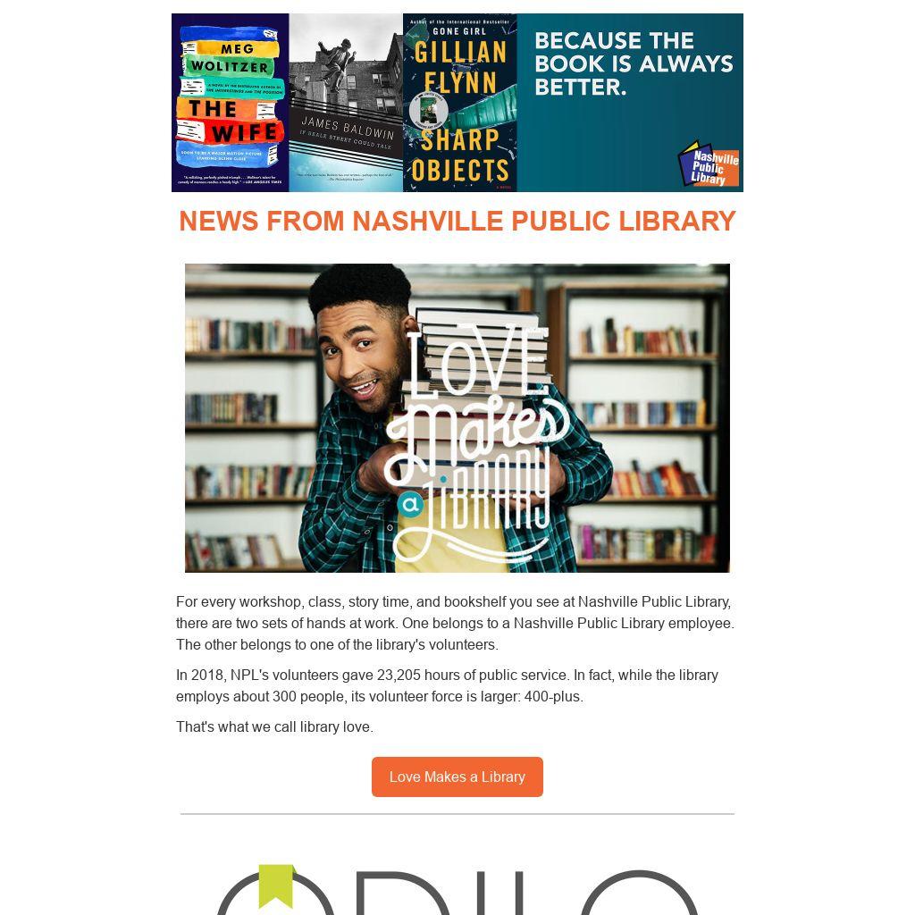 For every workshop, class, story time, and bookshelf you see at Nashville Public Library, there are two sets of hands at work. One belongs to a Nashville Public Library employee. The other belongs to one of the library's volunteers.