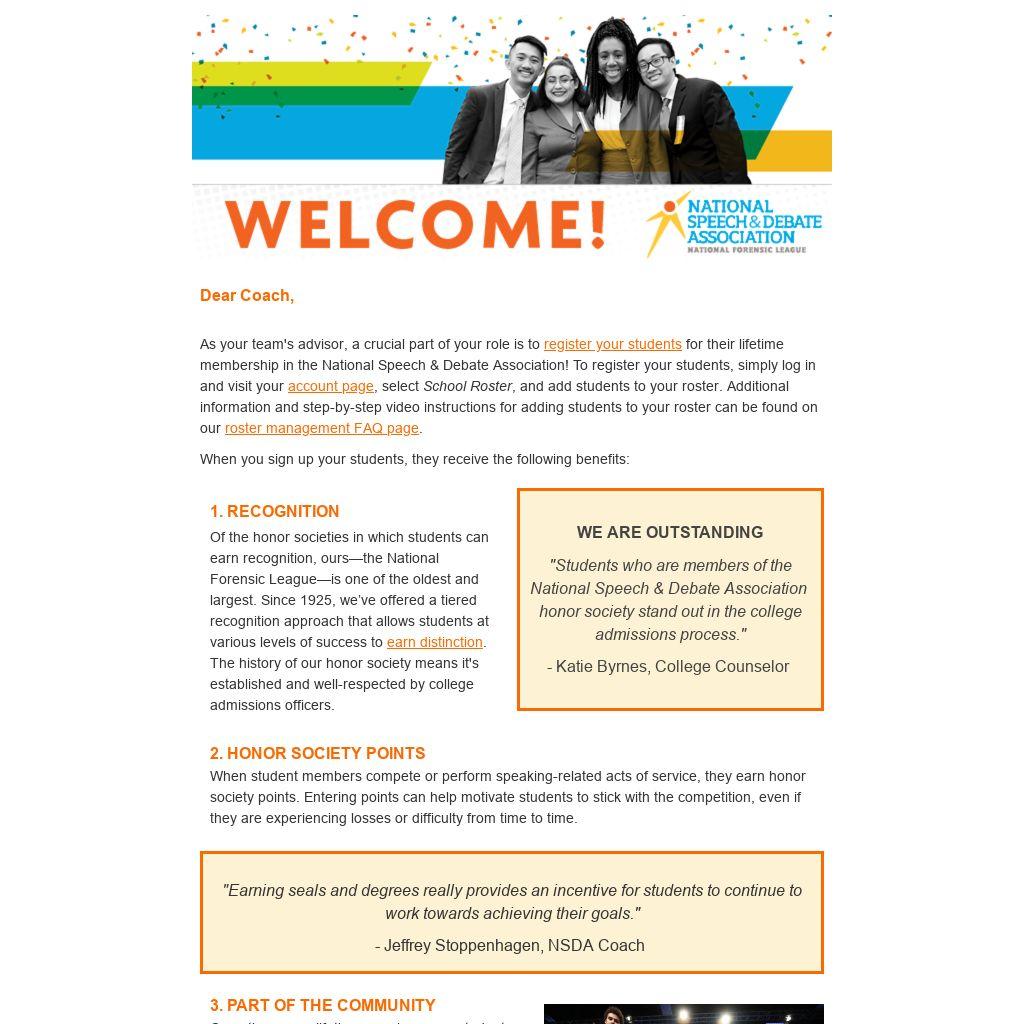 When student members compete or perform speaking-related acts of service, they earn honor society points. Entering points can help motivate students to stick with the competition, even if they are experiencing losses or difficulty from time to time.