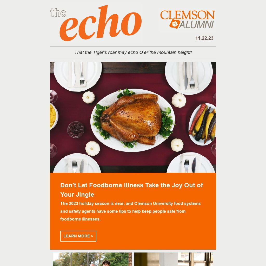 Don't Let Foodborne Illness Take the Joy Out of Your Jingle The 2023 holiday season is near, and Clemson University food systems and safety agents have some tips to help keep people safe from foodborne illnesses.