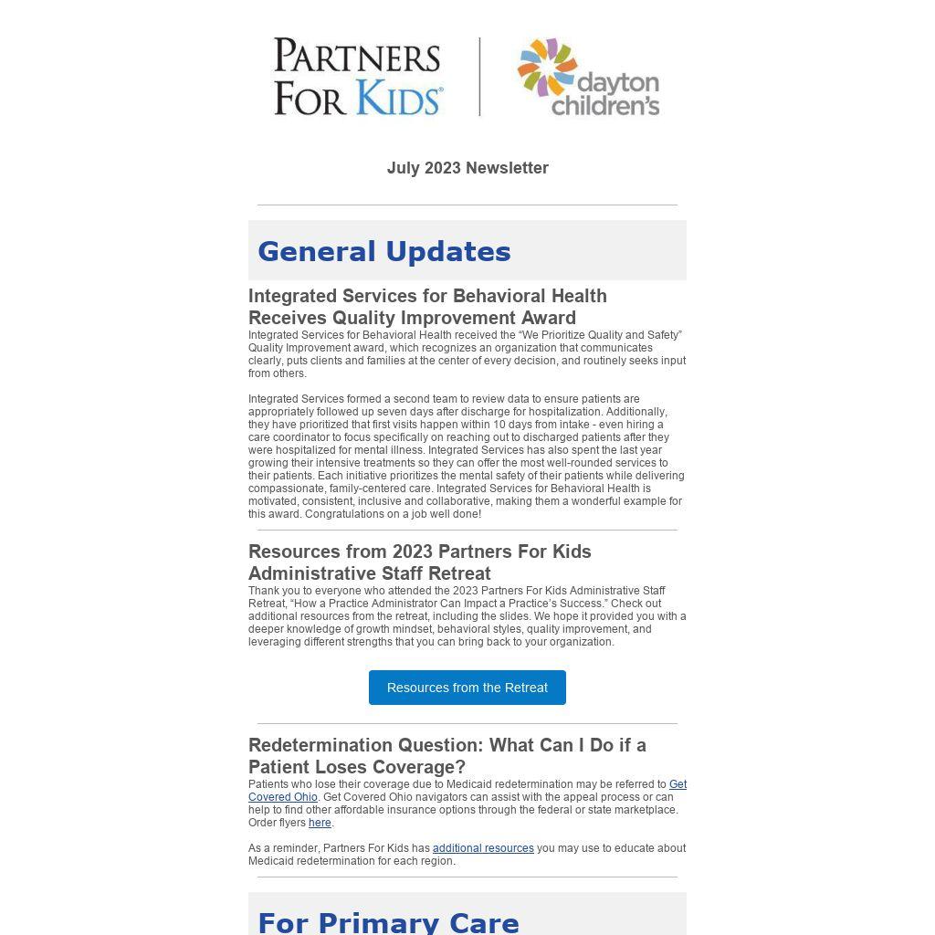 If you have questions regarding any of the information in this newsletter or suggestions regarding newsletter content that would be useful to your practice, please contact us at PFKProRelations@childrensdayton.org.