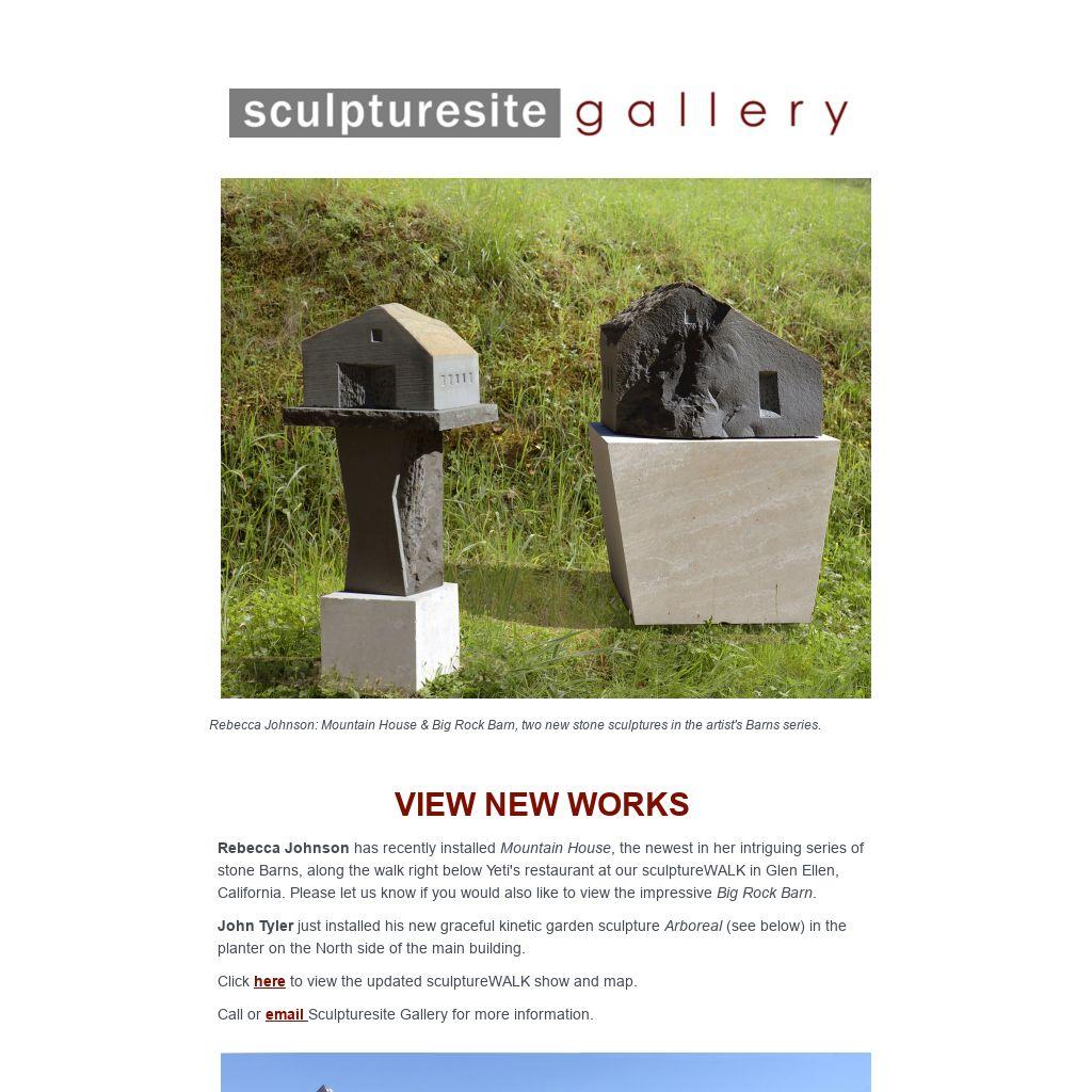 Rebecca Johnson has recently installed Mountain House, the newest in her intriguing series of stone Barns, along the walk right below Yeti's restaurant at our sculptureWALK in Glen Ellen, California. Please let us know if you would also like to view the impressive Big Rock Barn.