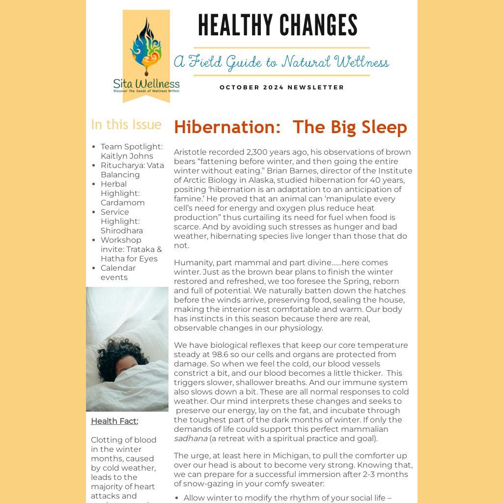 Humanity, part mammal and part divine……here comes winter. Just as the brown bear plans to finish the winter restored and refreshed, we too foresee the Spring, reborn and full of potential. We naturally batten down the hatches before the winds arrive, preserving food, sealing the house, making the interior nest comfortable and warm. Our body has instincts in this season because there are real, observable changes in our physiology.