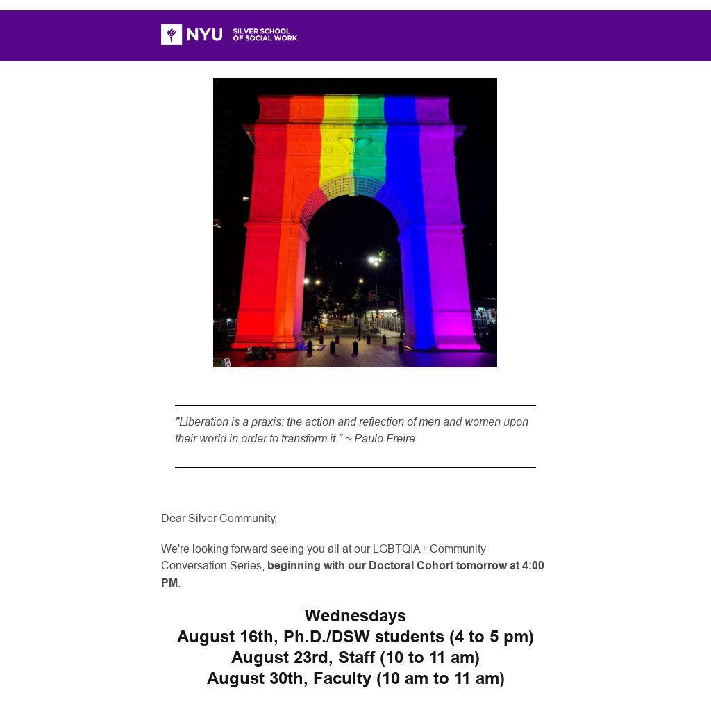 We're looking forward seeing you all at our LGBTQIA+ Community Conversation Series, beginning with our Doctoral Cohort tomorrow at 4:00 PM.