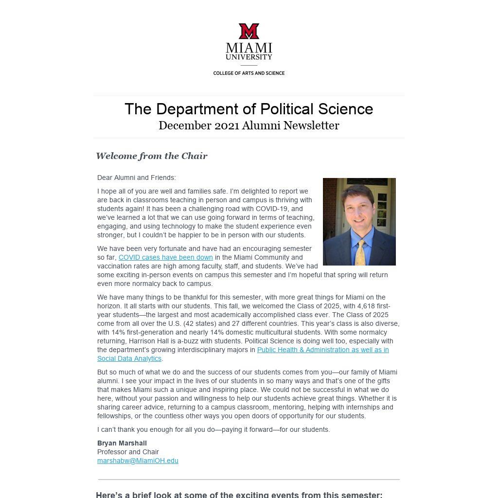 "I truly enjoyed every minute that I lived in the city. I will never forget my early morning runs where I watched the sun rise over the Capitol, going to the Eastern Market on Saturday mornings, and exploring the various neighborhoods of the city. I would like to thank the Political Science Department and their donors for providing me a scholarship to help with the cost of this program and giving me an experience that I will never forget."