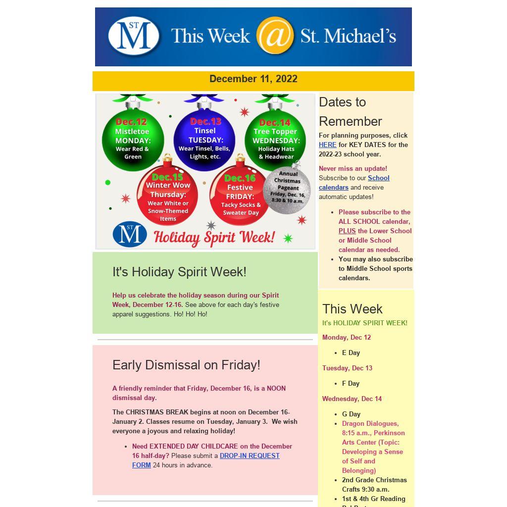 Current and past issues of "This Week at St. Michael's" are now archived on our website under "News and Events," as well as under "Community."