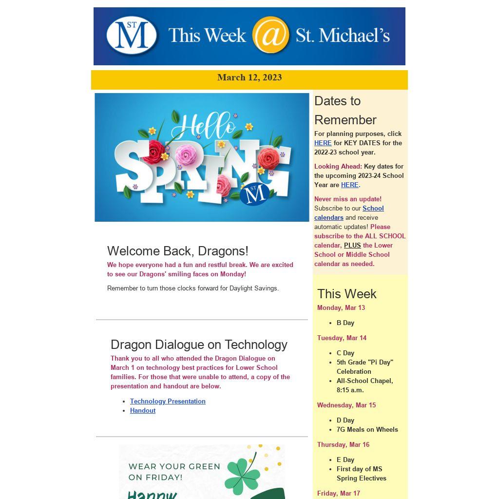 Get connected to keep abreast of St M news, events, calendar changes, and information.