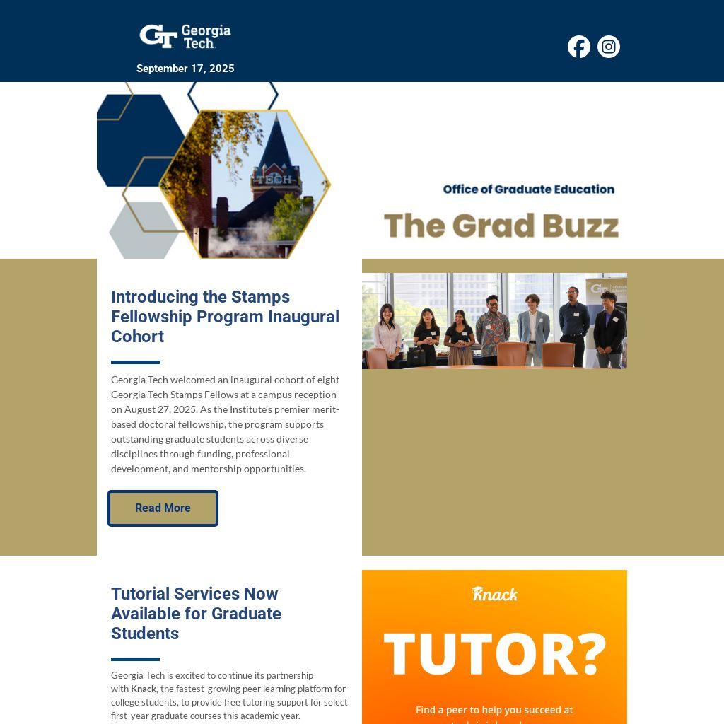 Georgia Tech is excited to continue its partnership with Knack, the fastest-growing peer learning platform for college students, to provide free tutoring support for select first-year graduate courses this academic year.