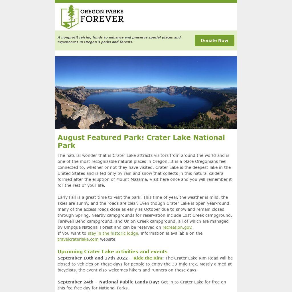 September 24th – National Public Lands Day: Get in to Crater Lake for free on this fee-free day for National Parks.
