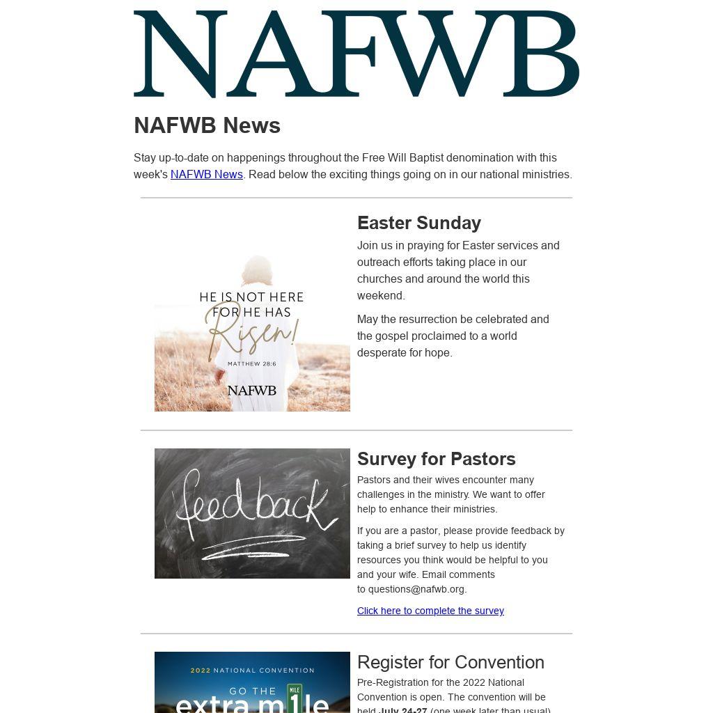 Share this newsletter with a friend and invite them to subscribe to receive all of our future emails. You can subscribe or find past newsletters at www.nafwb.org/news.