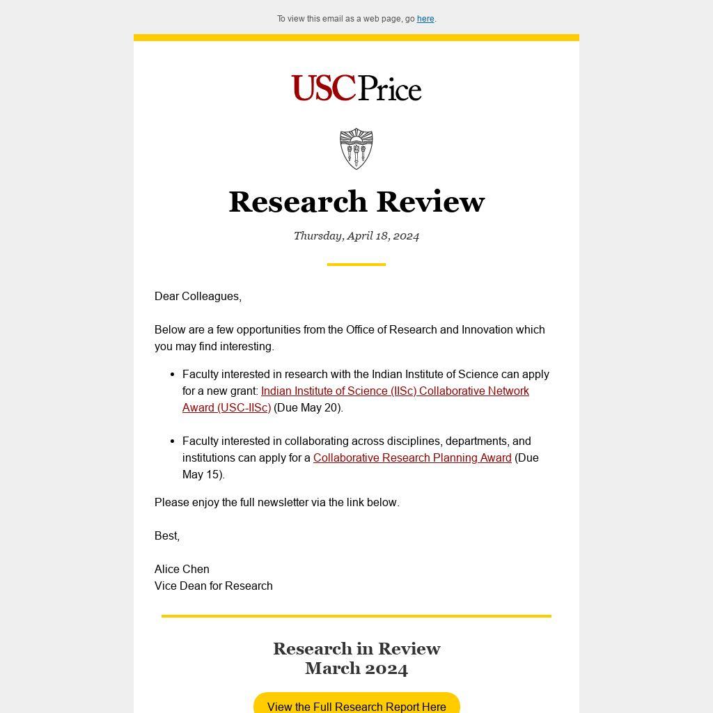 This email is brought to you by the USC Price Office of Research, Office of the Dean