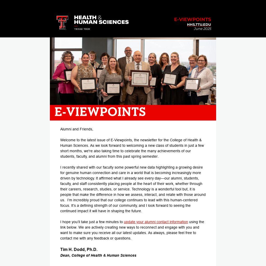 Welcome to the latest issue of E-Viewpoints, the newsletter for the College of Health & Human Sciences. As we look forward to welcoming a new class of students in just a few short months, we're also taking time to celebrate the many achievements of our students, faculty, and alumni from this past spring semester.