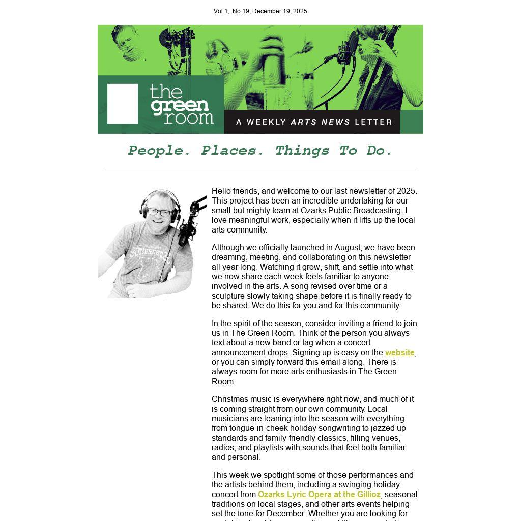 | | Hello friends, and welcome to our last newsletter of 2025. This project has been an incredible undertaking for our small but mighty team at Ozarks Public Broadcasting. I love meaningful work, especially when it lifts up the local arts community.