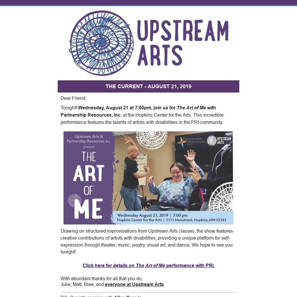 Tonight! Wednesday, August 21 at 7:00pm, join us for The Art of Me with Partnership Resources, Inc. at the Hopkins Center for the Arts. This incredible performance features the talents of artists with disabilities in the PRI community.
