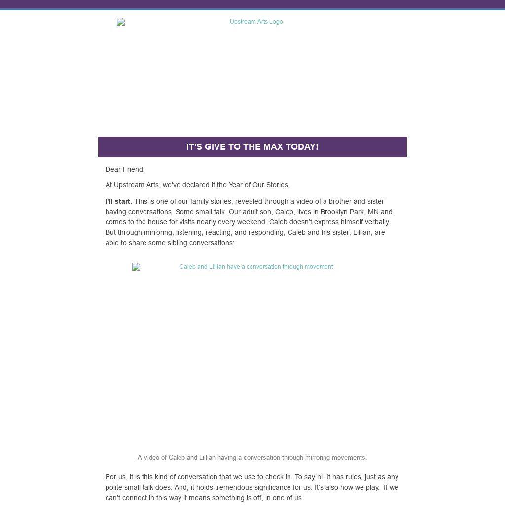 We have the goal of raising $5000 on Give to the Max day so that Upstream Arts can continue to use the power of the creative arts to activate and amplify the voice and choice of individuals with disabilities.