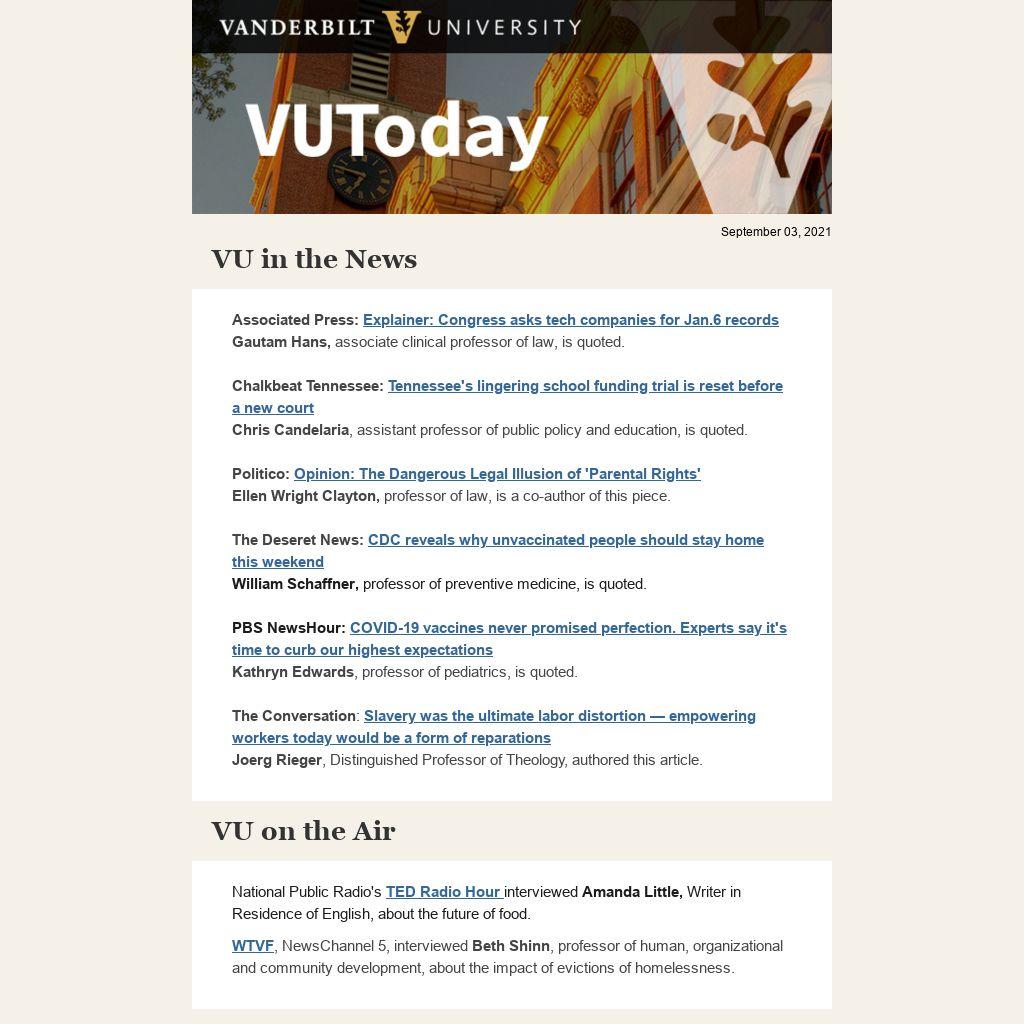 The Deseret News: CDC reveals why unvaccinated people should stay home this weekend William Schaffner, professor of preventive medicine, is quoted.