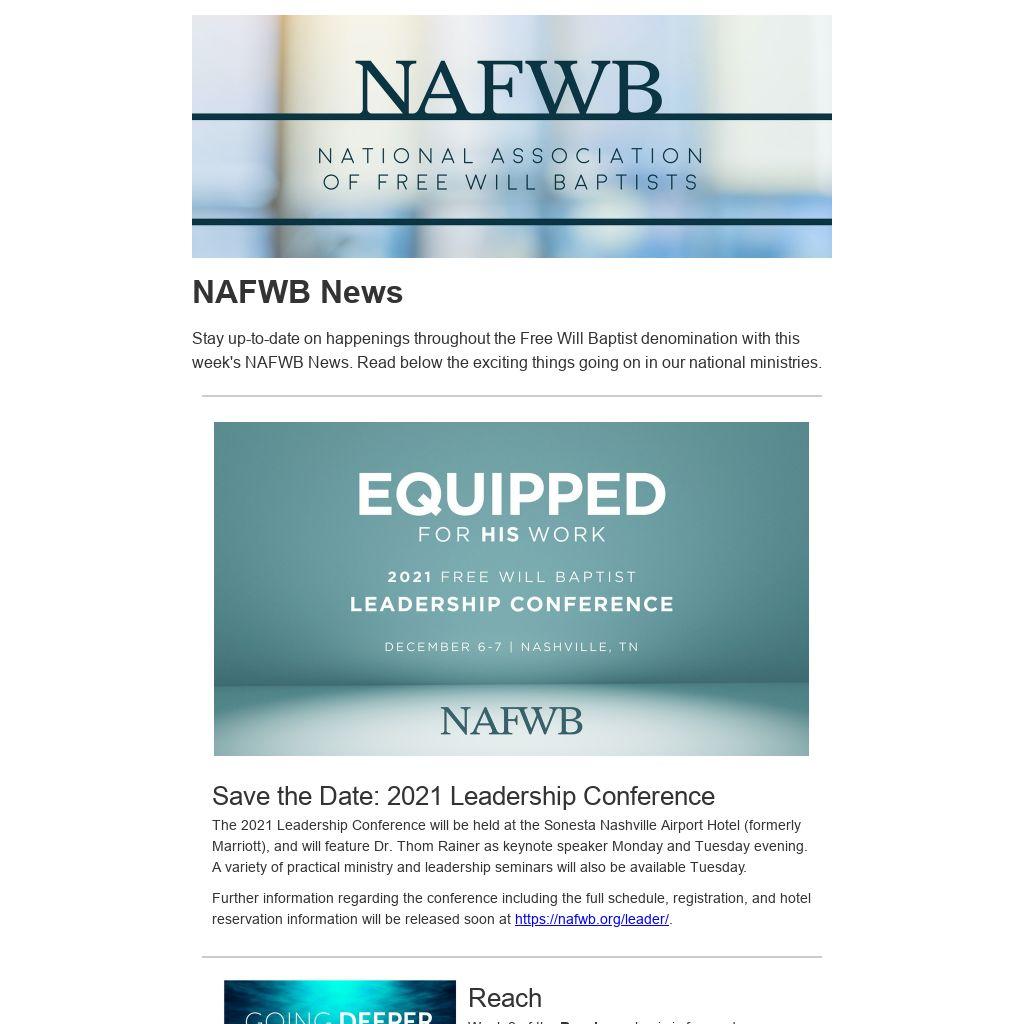 Stay up-to-date on happenings throughout the Free Will Baptist denomination with this week's NAFWB News. Read below the exciting things going on in our national ministries.