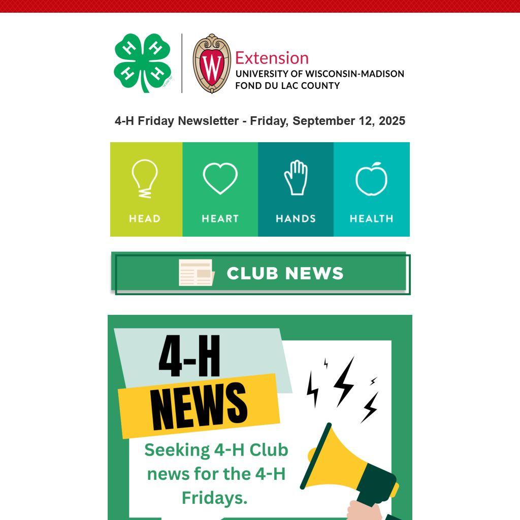 Have a Newsletter Contribution?LEADERS, MEMBERS, and PARENTS can contribute to the articles posted weekly by completing a short form and uploading their article and any photos at go.wisc.edu/2665ok. Articles for the current week must be submitted by 12 pm on Wednesday. We would love to hear from you! Secretary minutes can also be submitted here!