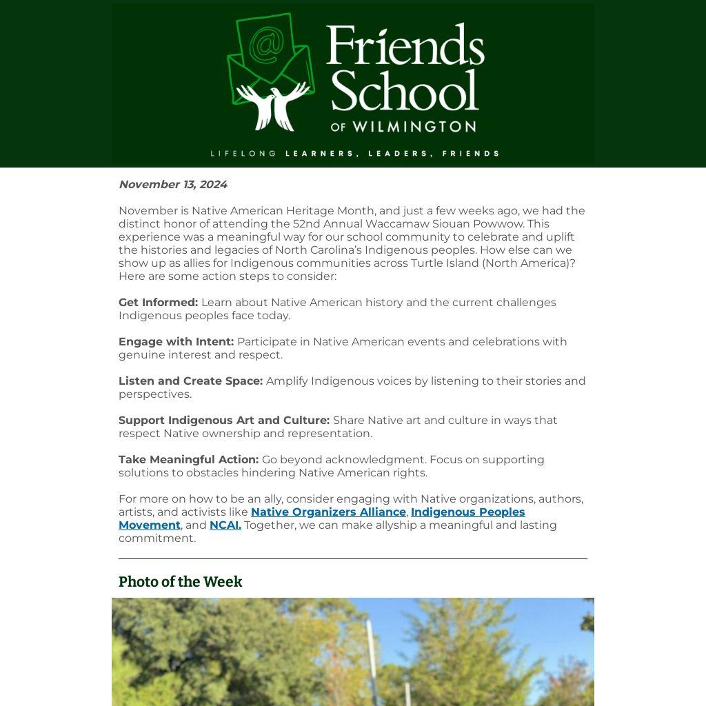 November is Native American Heritage Month, and just a few weeks ago, we had the distinct honor of attending the 52nd Annual Waccamaw Siouan Powwow. This experience was a meaningful way for our school community to celebrate and uplift the histories and legacies of North Carolina’s Indigenous peoples. How else can we show up as allies for Indigenous communities across Turtle Island (North America)? Here are some action steps to consider: