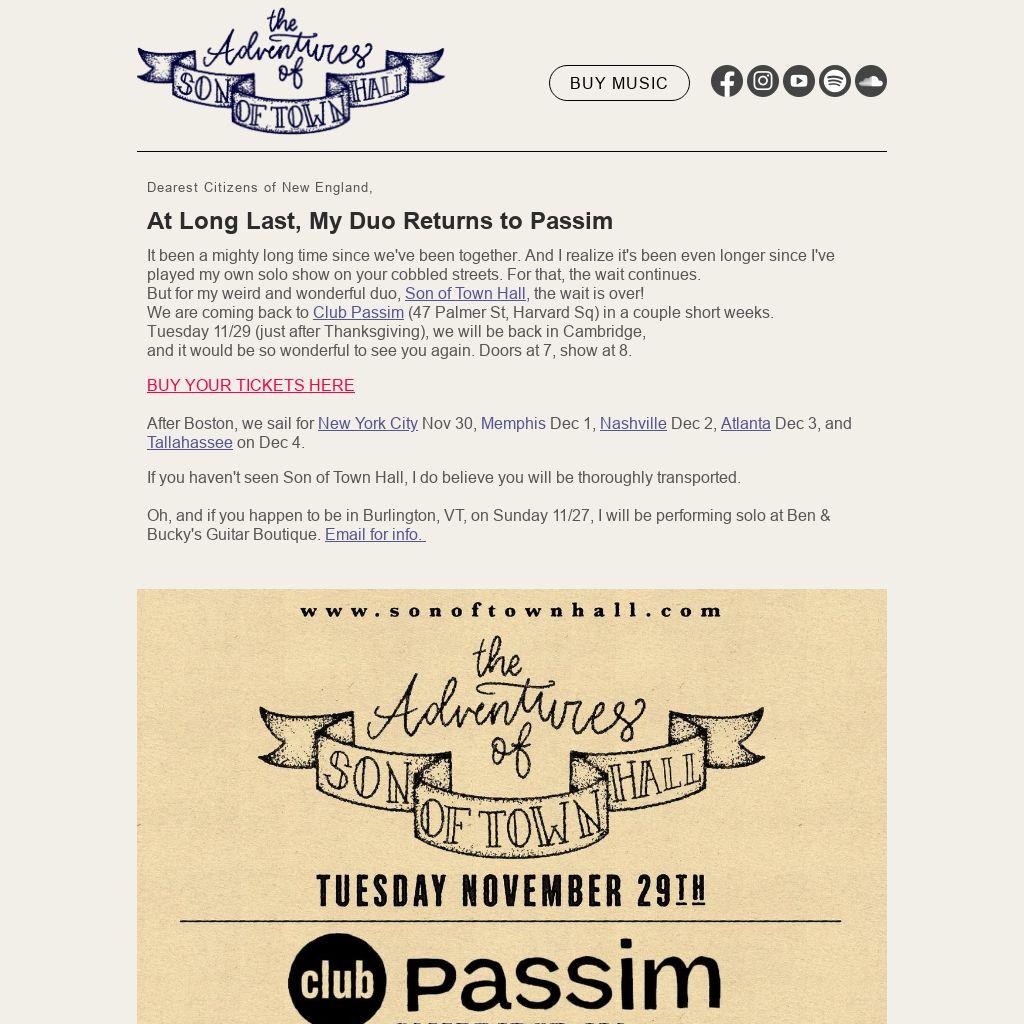 We are coming back to Club Passim (47 Palmer St, Harvard Sq) in a couple short weeks.