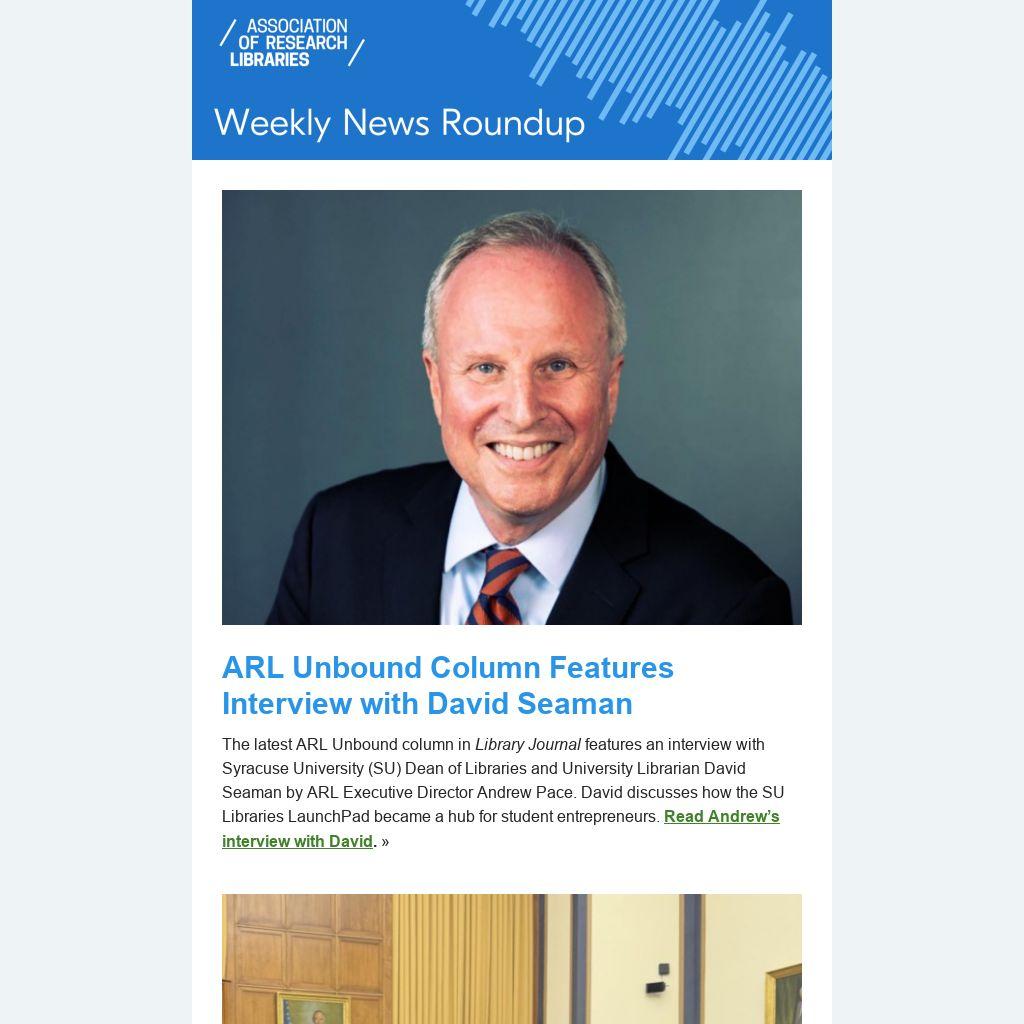 The latest ARL Unbound column in Library Journal features an interview with Syracuse University (SU) Dean of Libraries and University Librarian David Seaman by ARL Executive Director Andrew Pace. David discusses how the SU Libraries LaunchPad became a hub for student entrepreneurs. Read Andrew’s interview with David. »