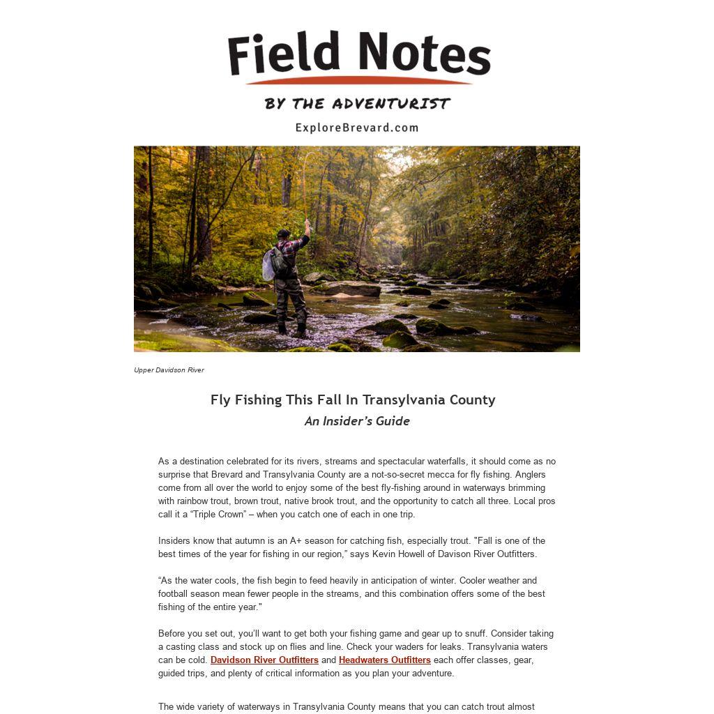 No matter where you go, you can expect an amazing time. Says Whitmire, “The French Broad River watershed, which includes the popular Davidson River, makes Transylvania County not only one of the most scenic places to fly fish in the fall but offers something for everyone."