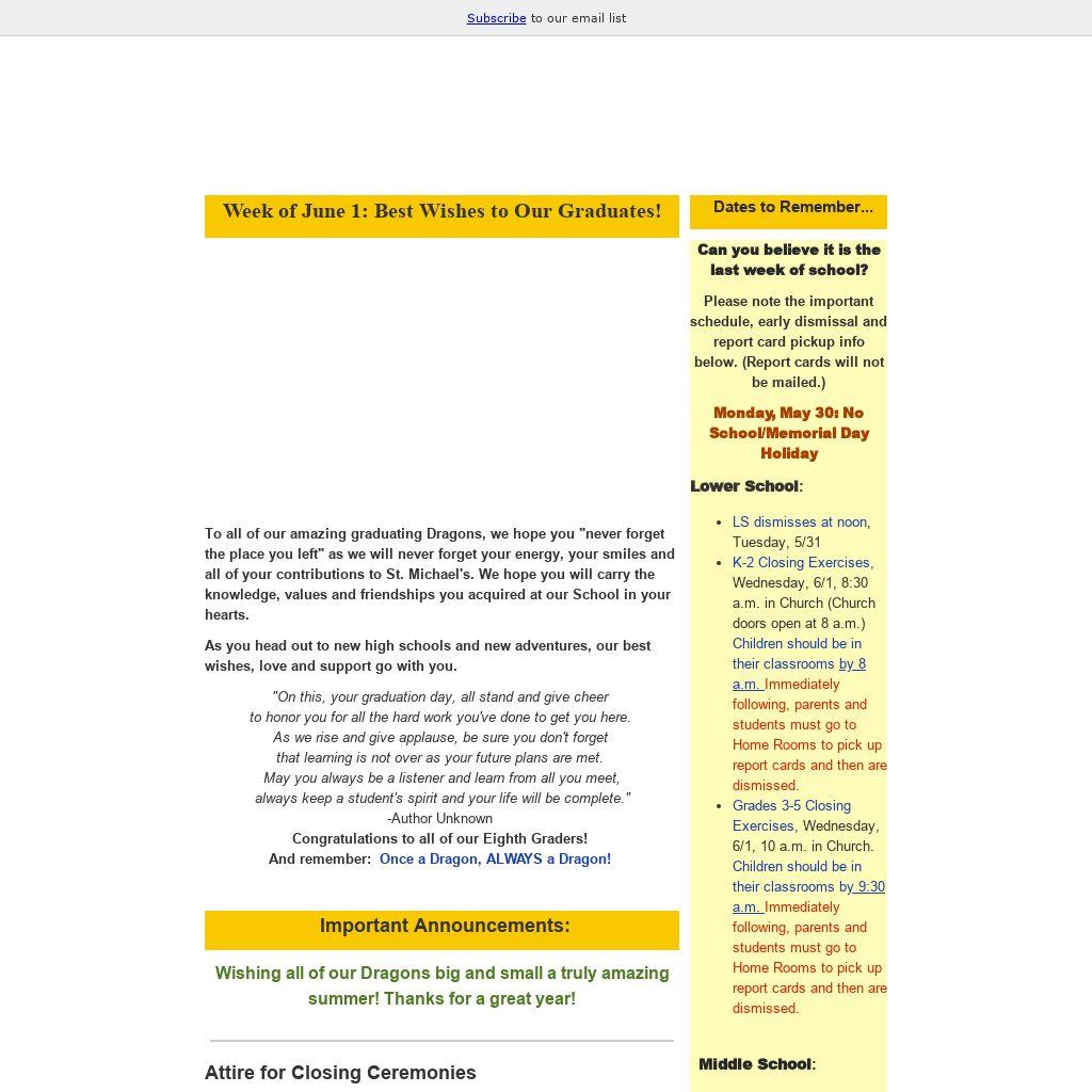- Eighth Grade Graduation, Friday, 6/3, 9 a.m., Singleton gym.