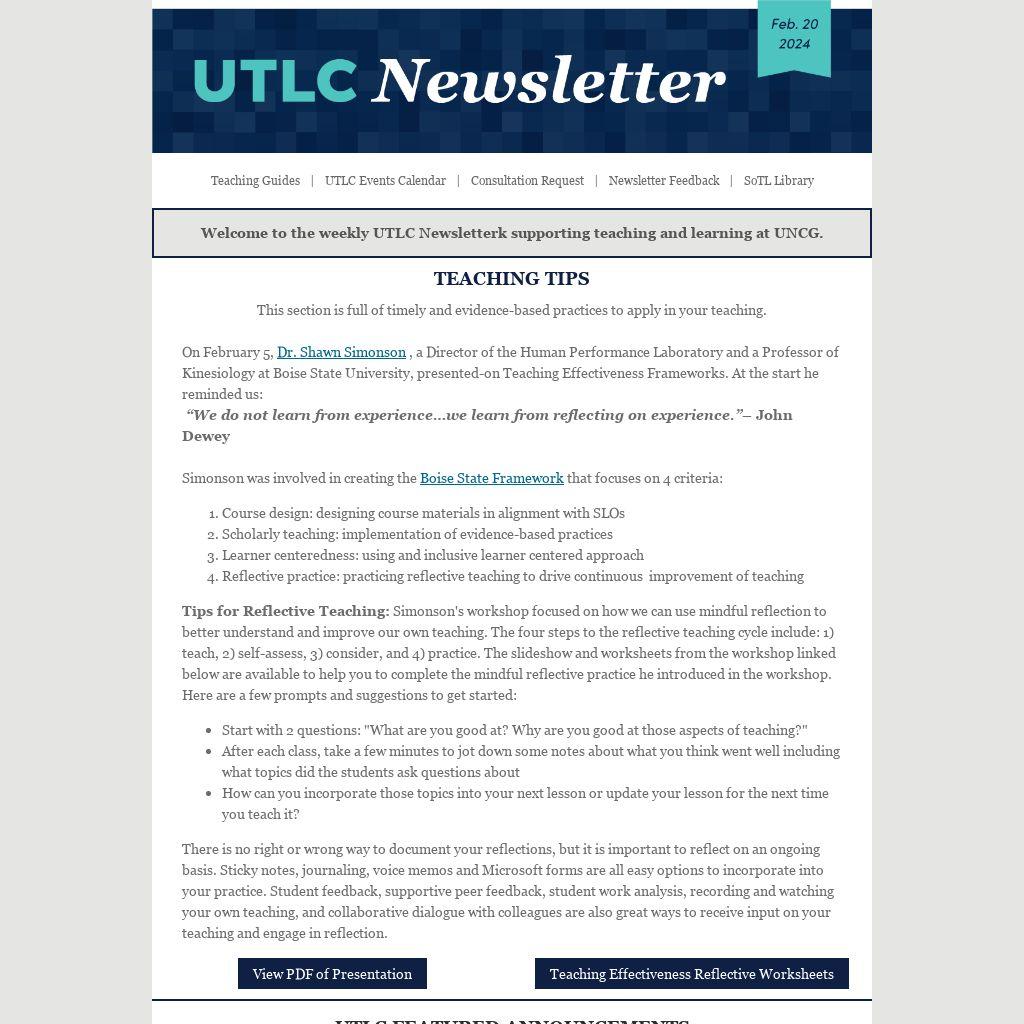 Welcome to the weekly UTLC Newsletterk supporting teaching and learning at UNCG.