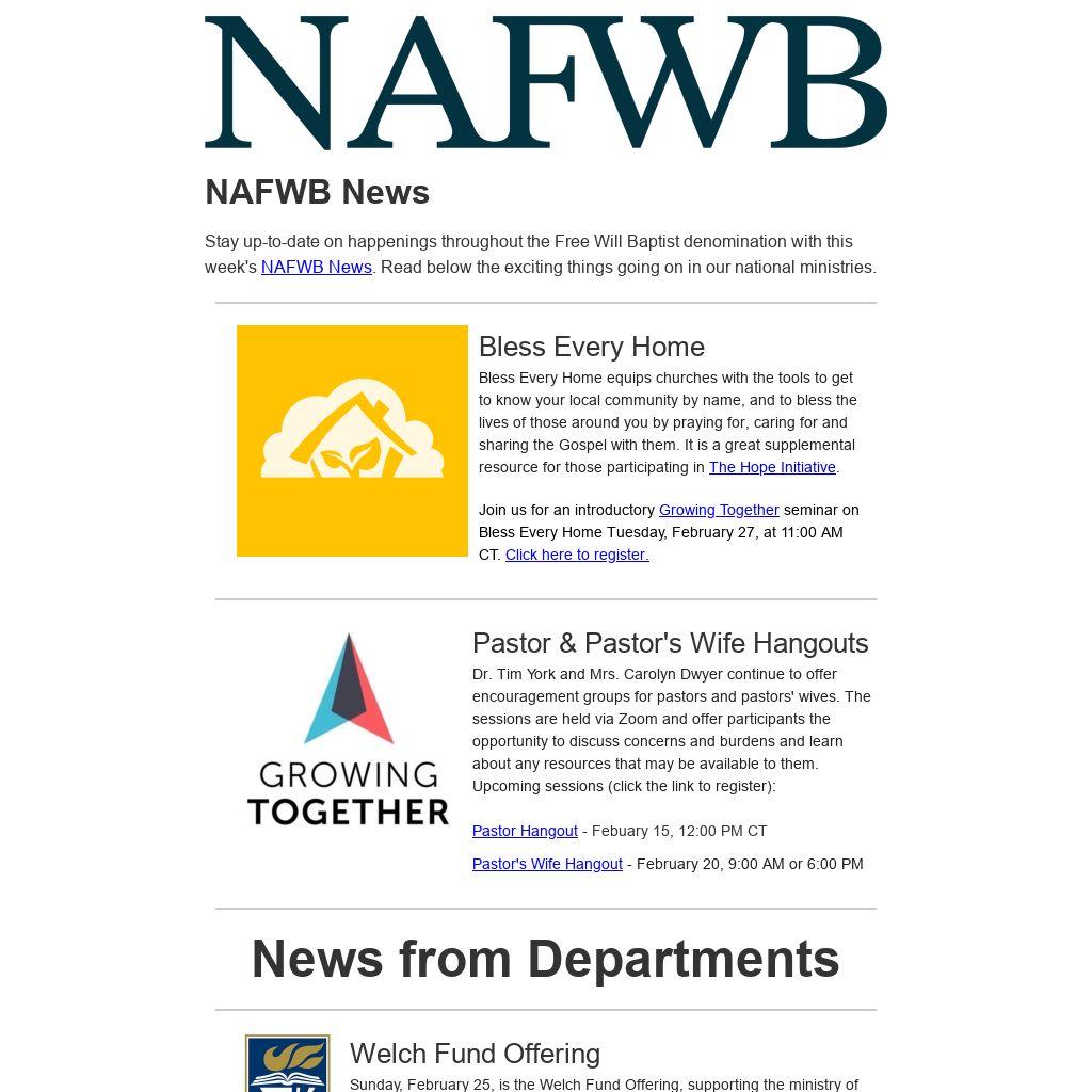 Stay up-to-date on happenings throughout the Free Will Baptist denomination with this week's NAFWB News. Read below the exciting things going on in our national ministries.