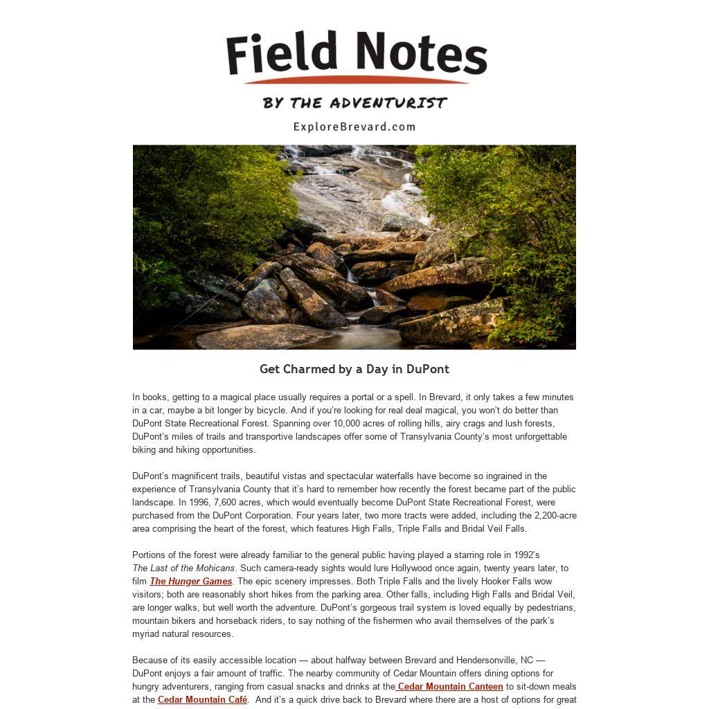 various outfitters throughout Transylvania County or find information