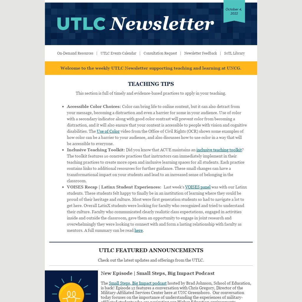Welcome to the weekly UTLC Newsletter supporting teaching and learning at UNCG.