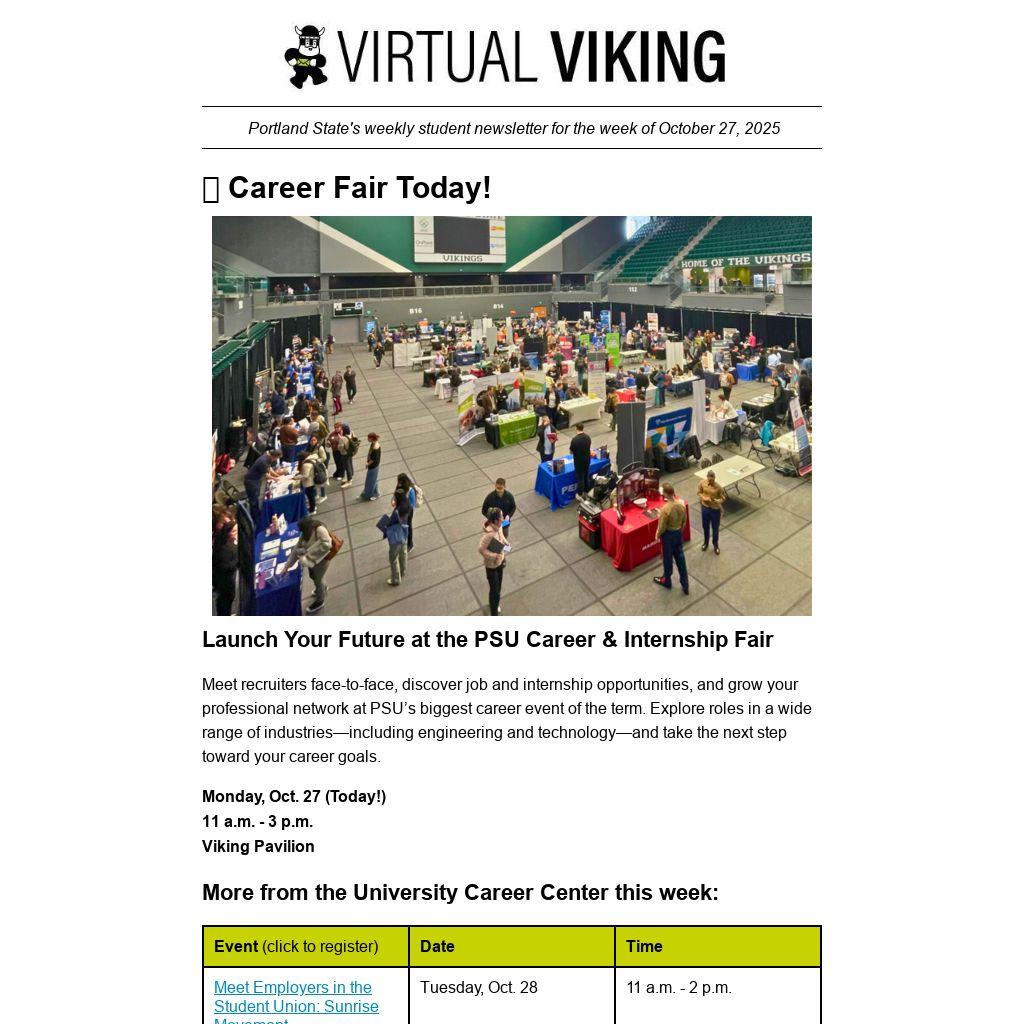 Virtual Viking is Portland State University's student newsletter, published weekly by University Communications. To submit a news item or event, email virtualv@pdx.edu.